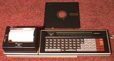 Here's a shot of the Quasar and its printer attachment, along with a 5 1/4" floppy disk to lend a sense of scale: